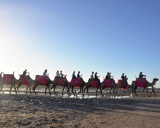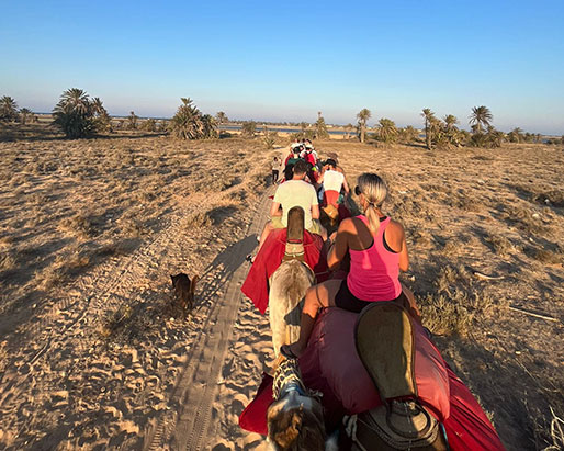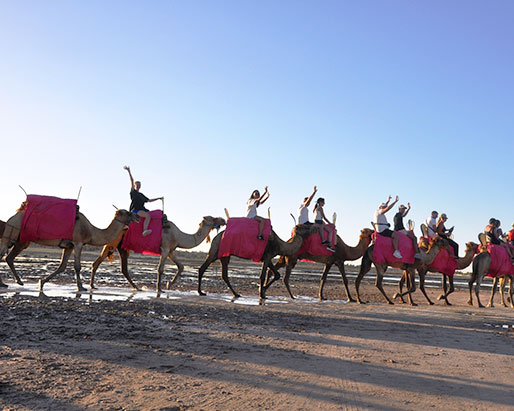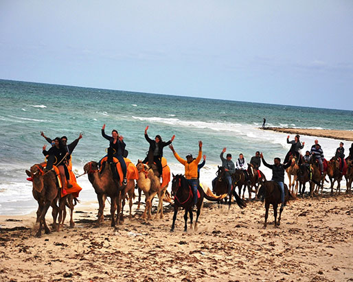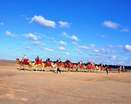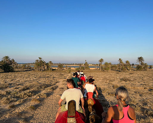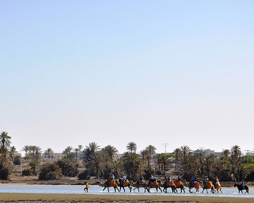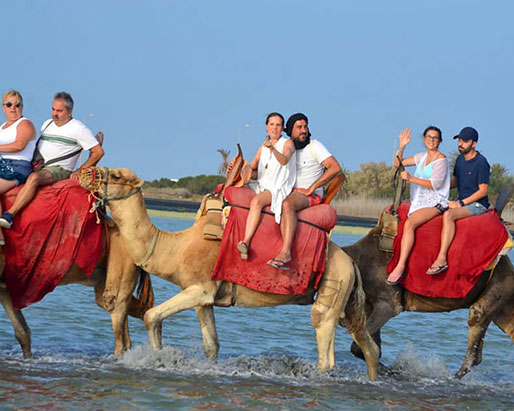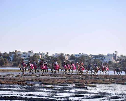 A l’occasion d’une sortie de 3 heures, à dos de dromadaire ou à cheval, après une balade sur les pistes, vous traverserez la lagune, non loin de la magnifique plage de la Seguia qui borde la mer Méditerranée et ses eaux turquoises …