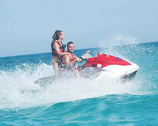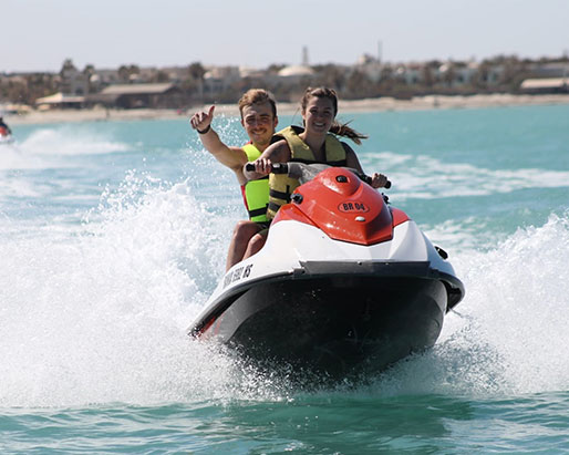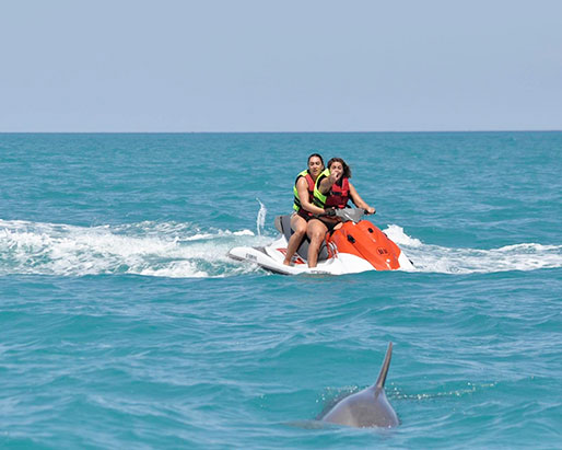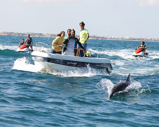 A Djerba, faire du Jet Ski n’est pas seulement lié aux sensations mais aussi à la possibilité de voir les dauphins, de se baigner avec eux et peut-être même les toucher.