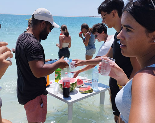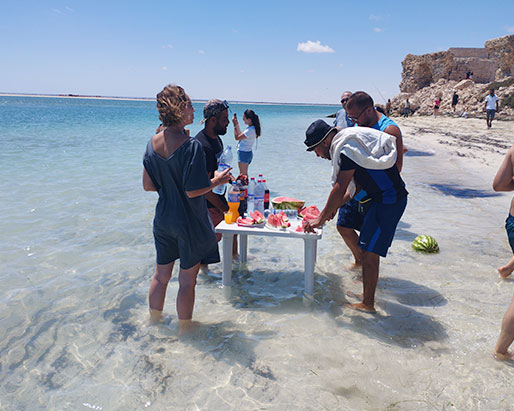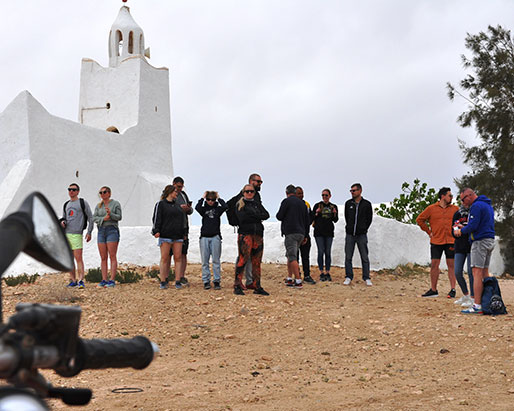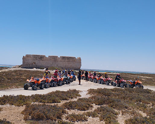 Dans un premier temps, vous sillonnerez la campagne tunisienne et profiterez de la vue sur les oliviers et palmiers avec une visite d’une ancienne maison djerbienne :MENZEL avec une explication du mode de vie d’une famille djerbienne par un guide qui parle bien plusieurs langues, après vous passer pour rendre visite a un ancien mosquée style djerbien ainsi que des puits et des maisons enterrées. Par la suite, vous vous rendrez du côté de la lagune bleue et conduisez sur la plage. Vous apprécierez la vue sur la mer, avec une baignade dans une plage vierge inaccessible que par quad.